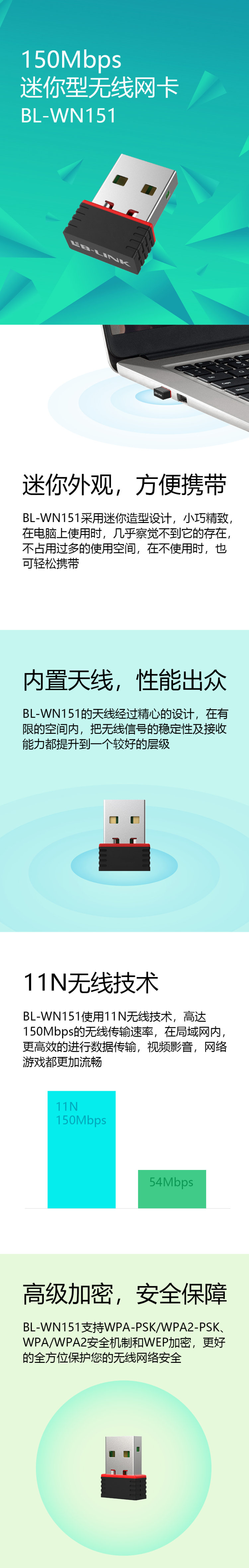 必联 BL-WN151 150M 迷你无线网卡