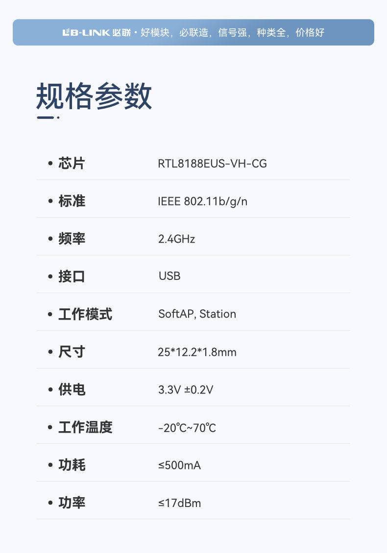 1T1R 802.11b/g/n WiFi模组