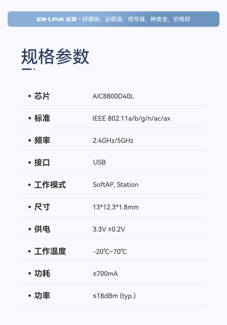 AIC8800D40L 芯片 WiFi6+B5.4 模组